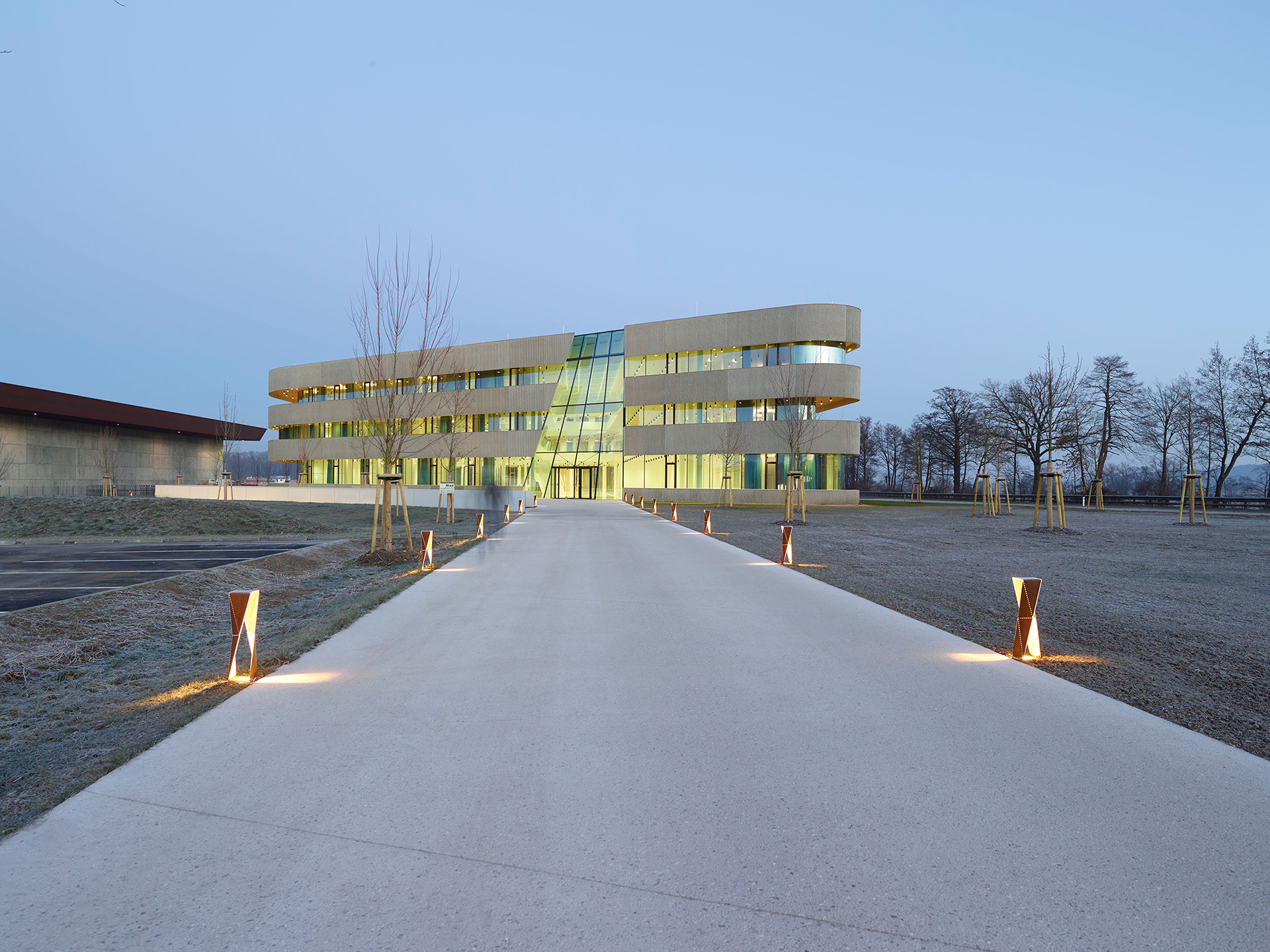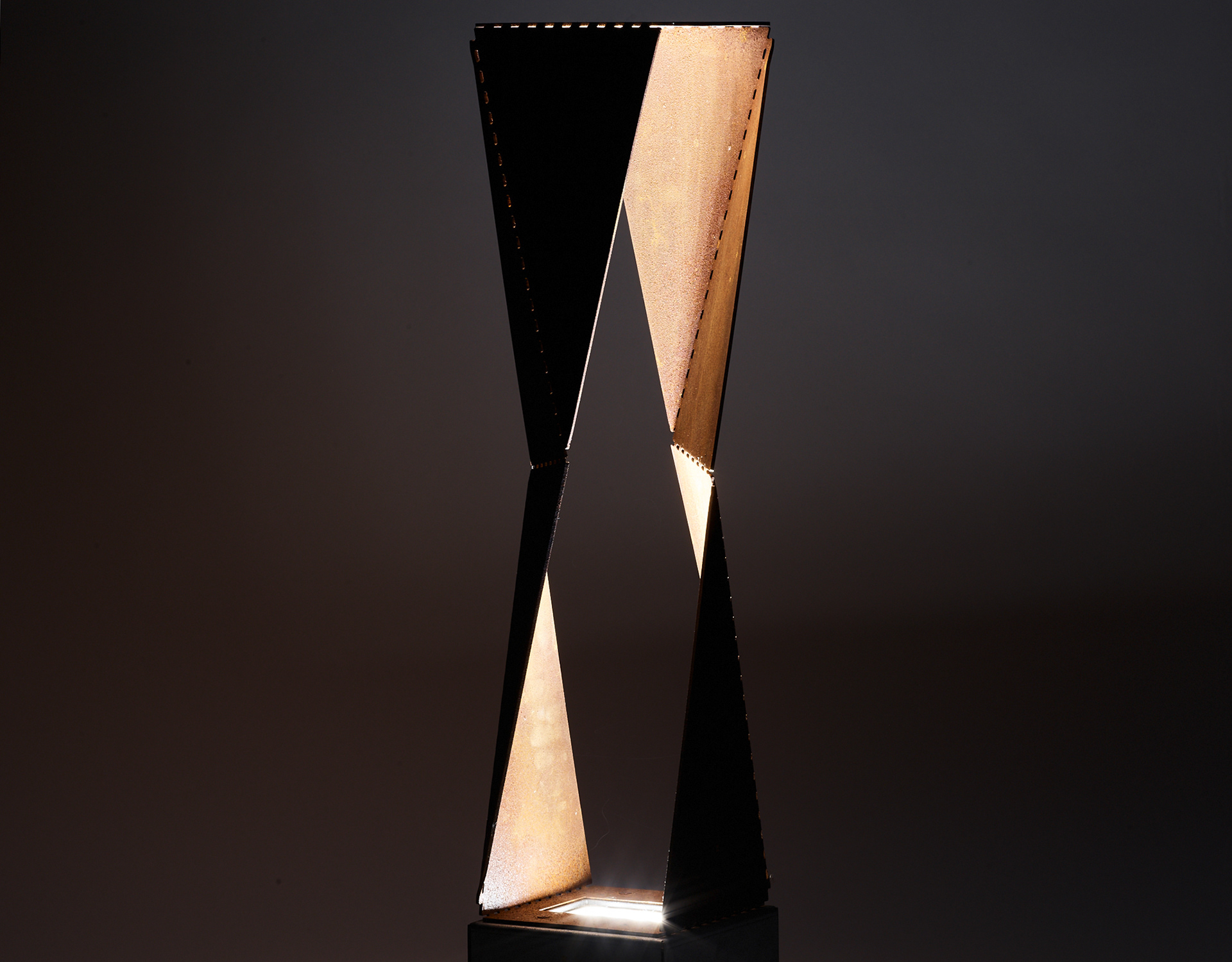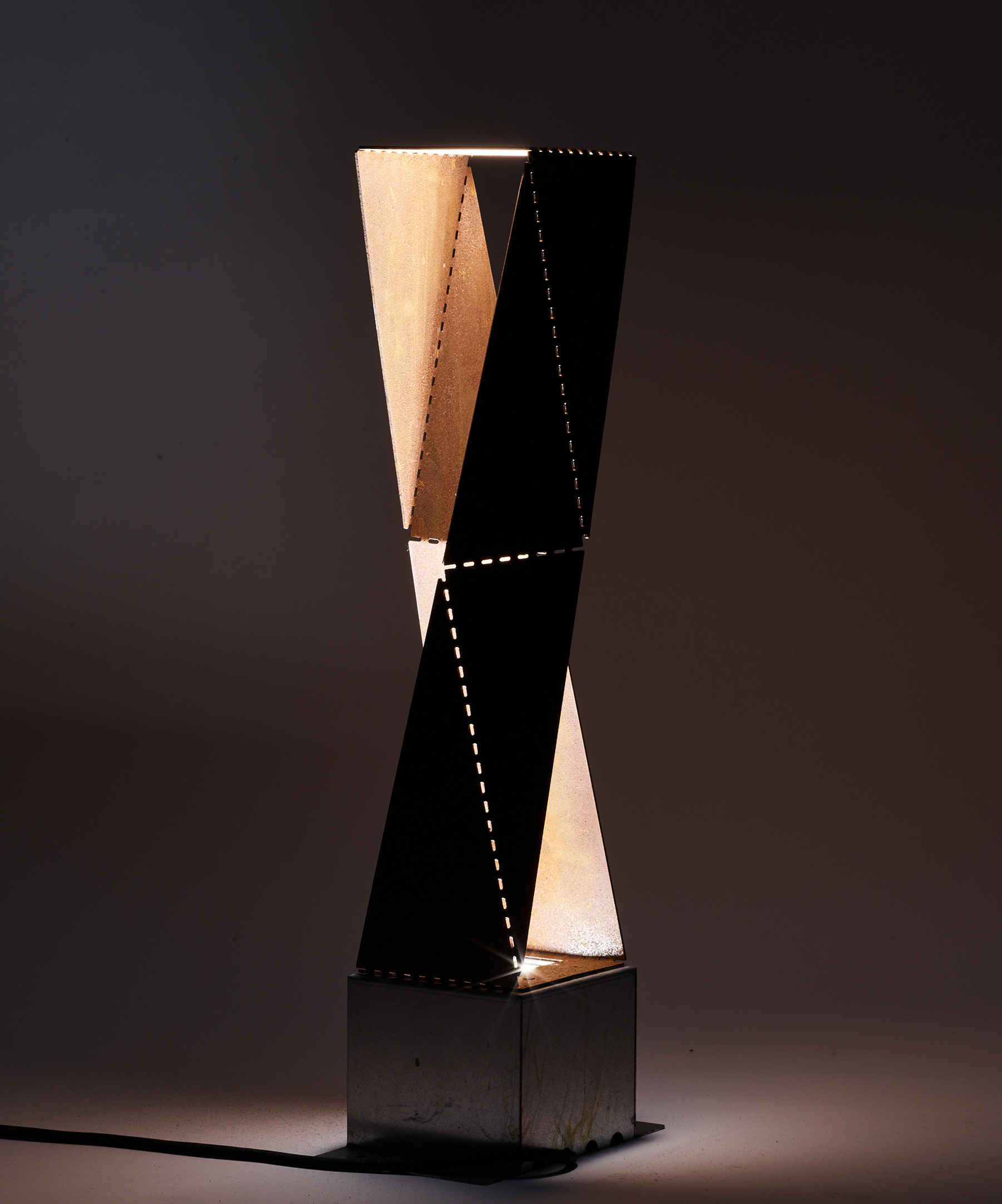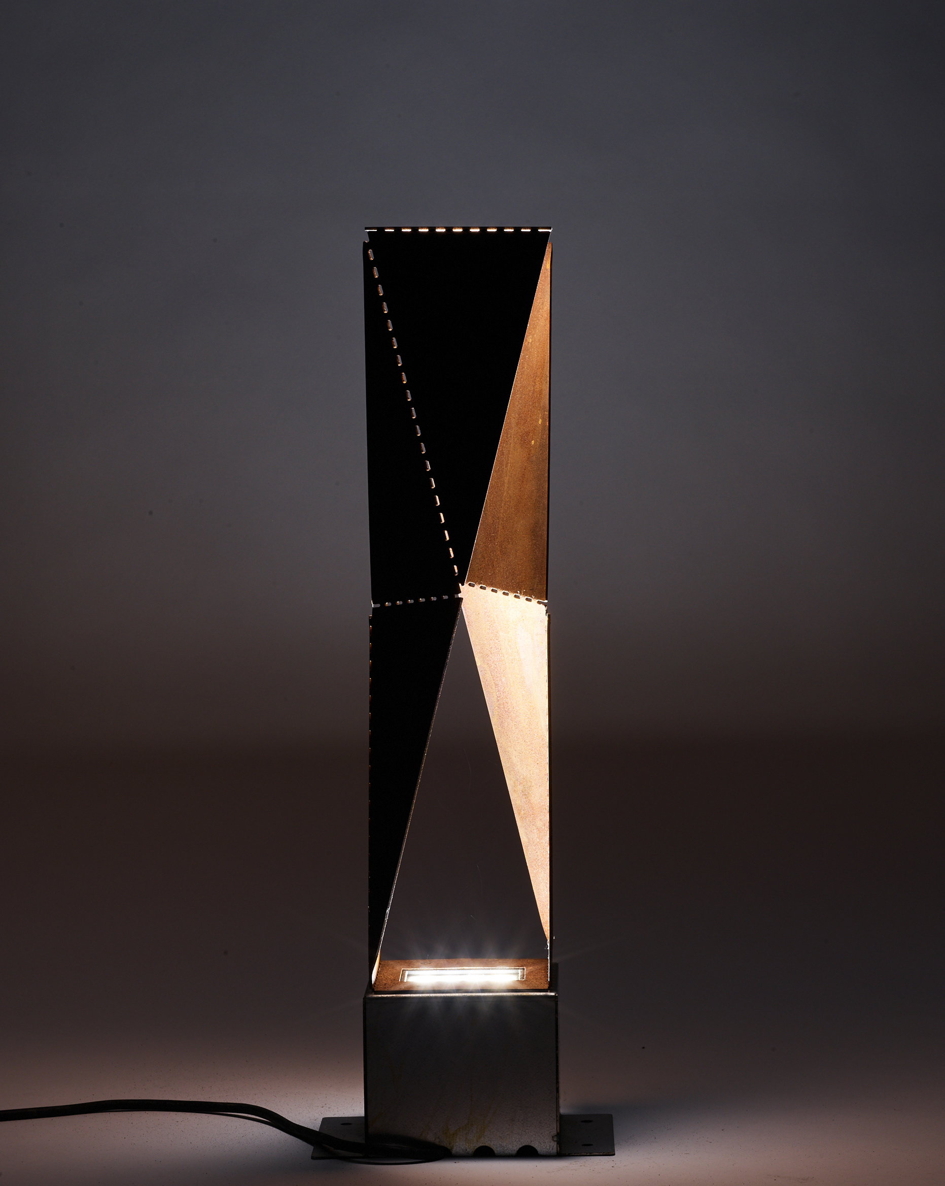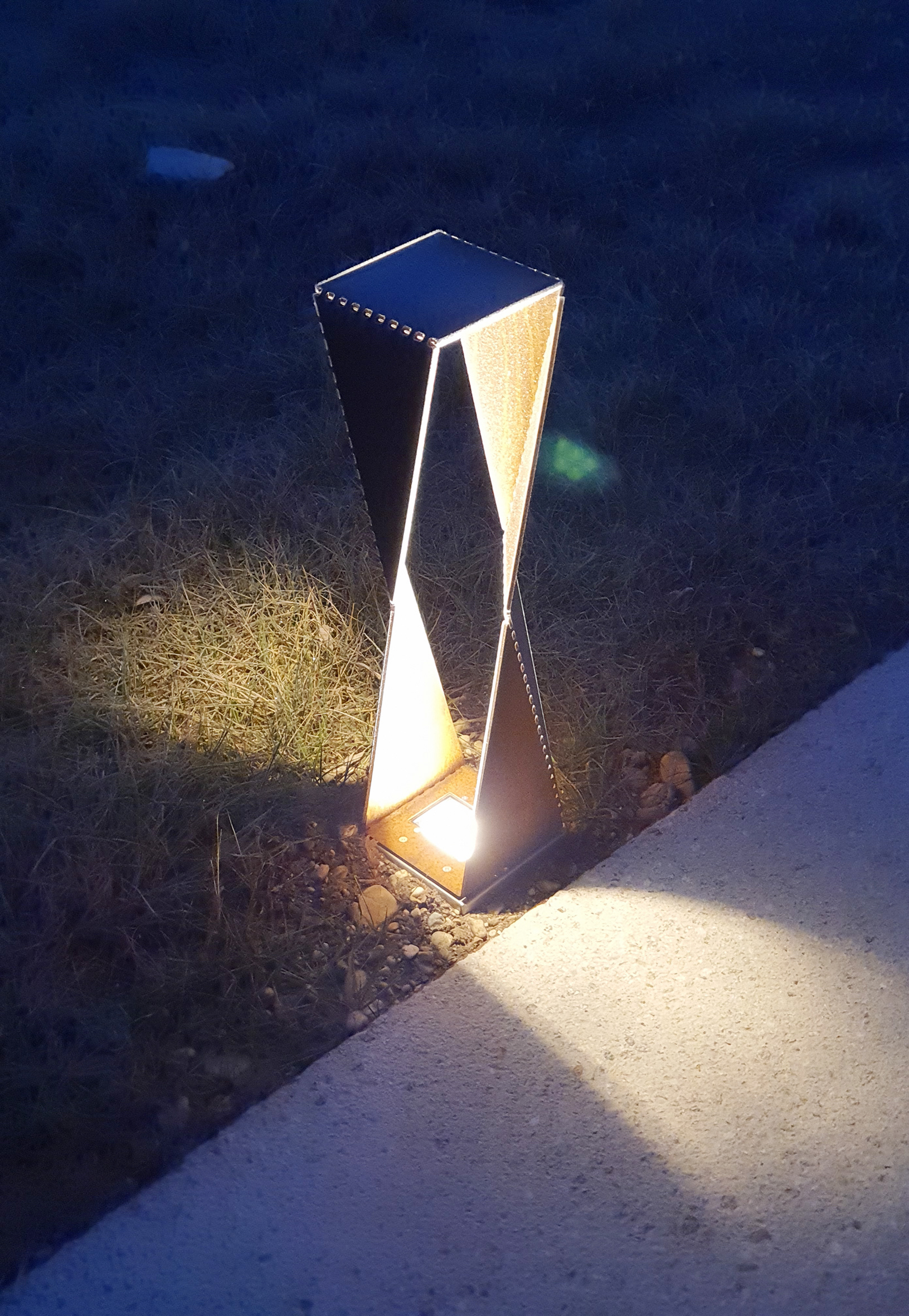 an outdoor lamp that tries to playfully dissolve the tension between steel and paper.